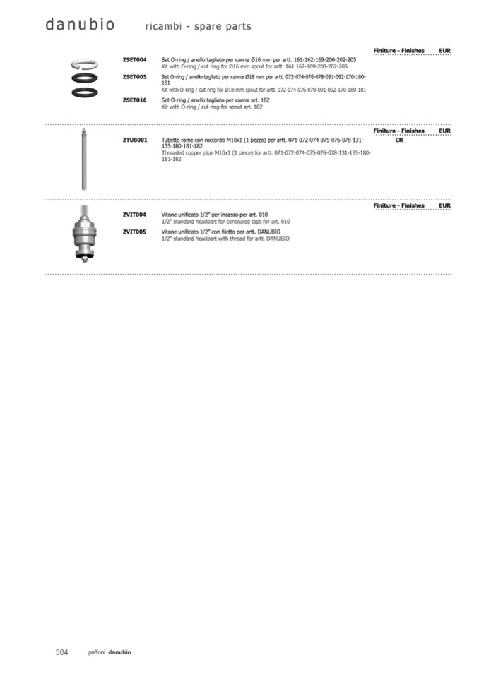 Kit with O-ring / cut ring for spout art. 182