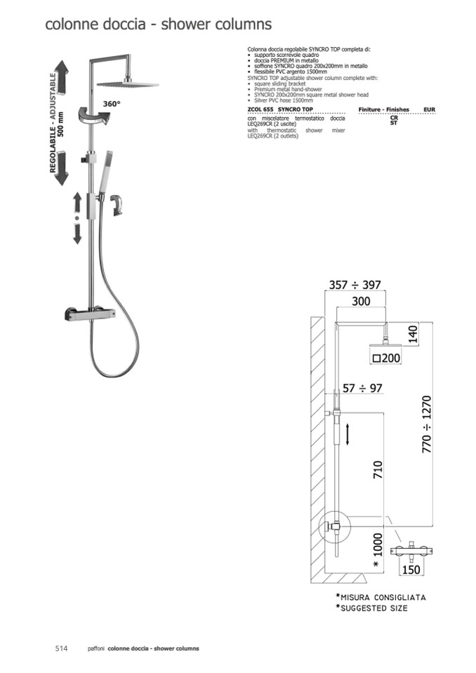 Colonna doccia regolabile SYNCRO TOP completa di: