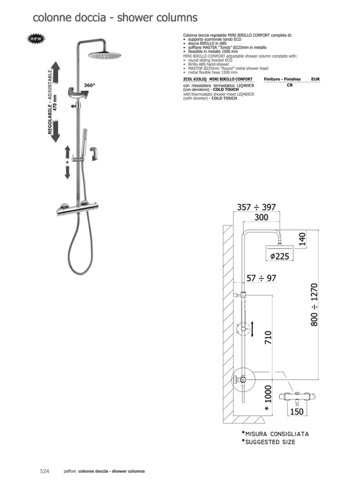 Colonna doccia regolabile MINI BIRILLO CONFORT completa di: