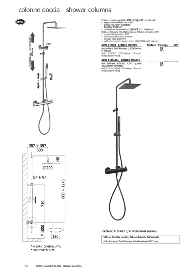 BIRILLO SQUARE adjustable shower column complete with: