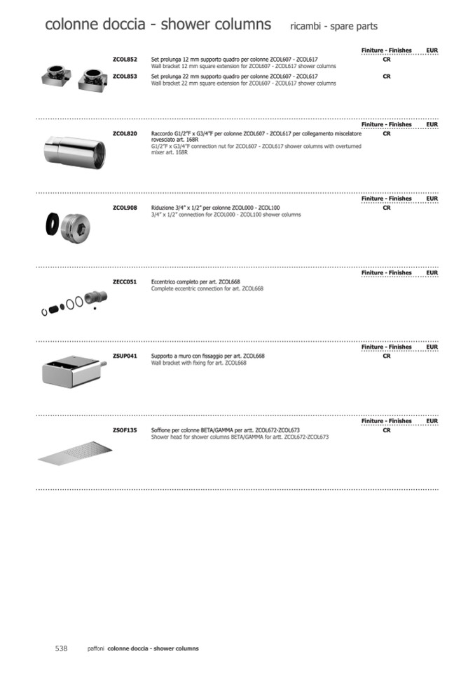Soffione per colonne BETA/GAMMA per artt. ZCOL672-ZCOL673
