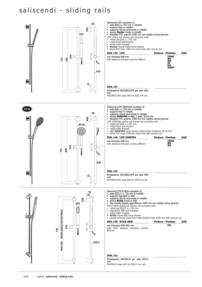 • doccia GINEVRA in ABS, 3 getti, Ø110 mm