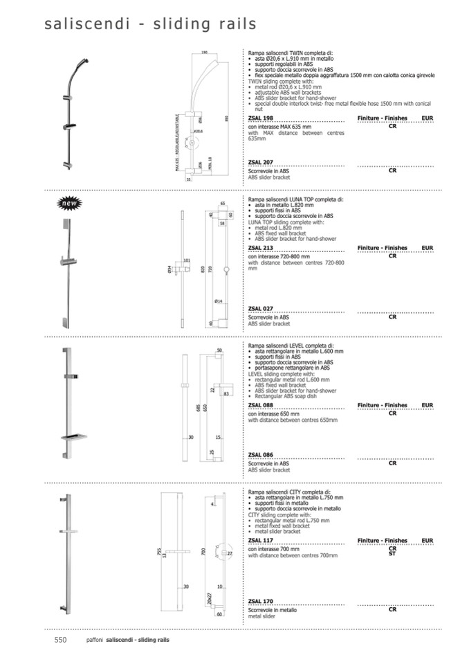 paffoni saliscendi - sliding rails