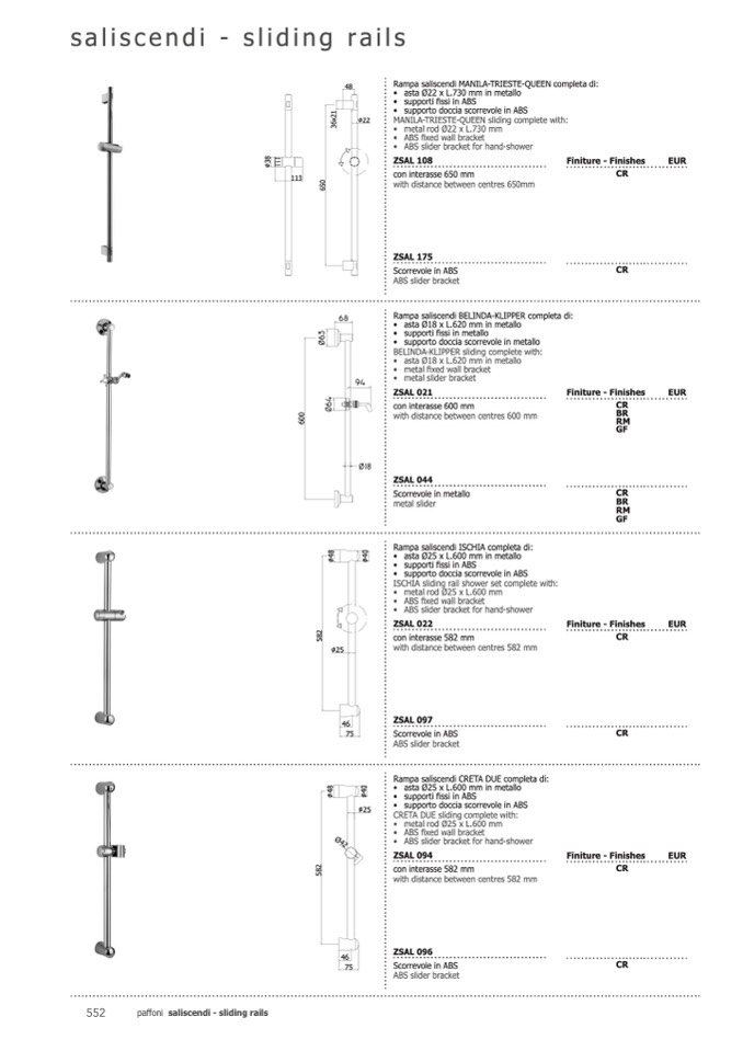 paffoni saliscendi - sliding rails