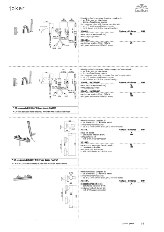 * CR with BIRILLO hand-shower/ NO with MASTER hand-shower