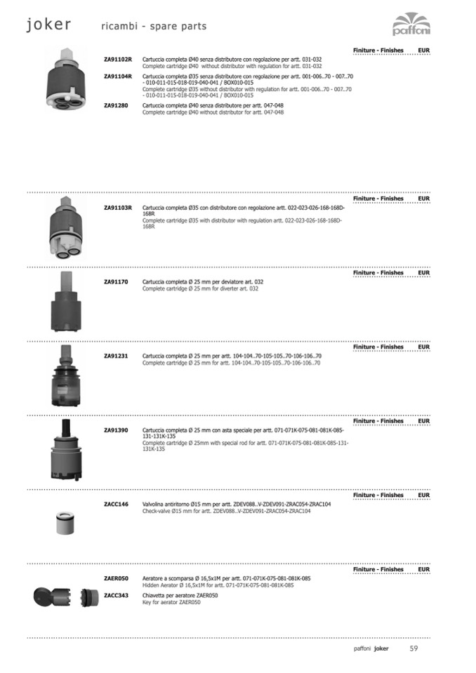 Complete cartridge Ø35 with distributor with regulation artt. 022-023-026-168-168D-