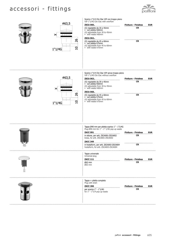 Scarico 1”1/4 Clic-Clac VIP senza troppo pieno