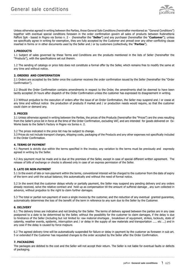 paffoni General sale conditions