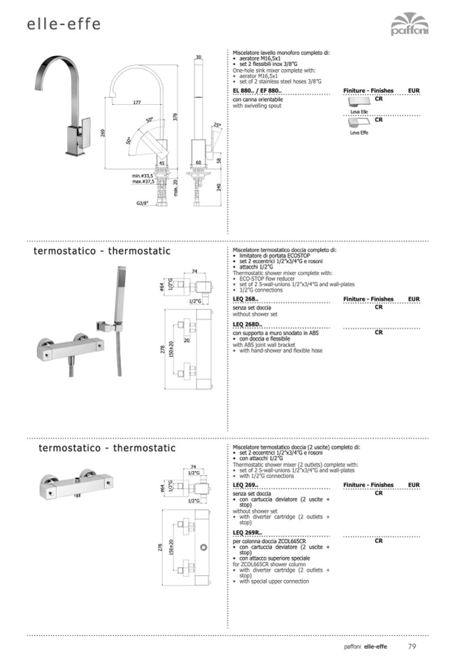 Miscelatore termostatico doccia (2 uscite) completo di:
