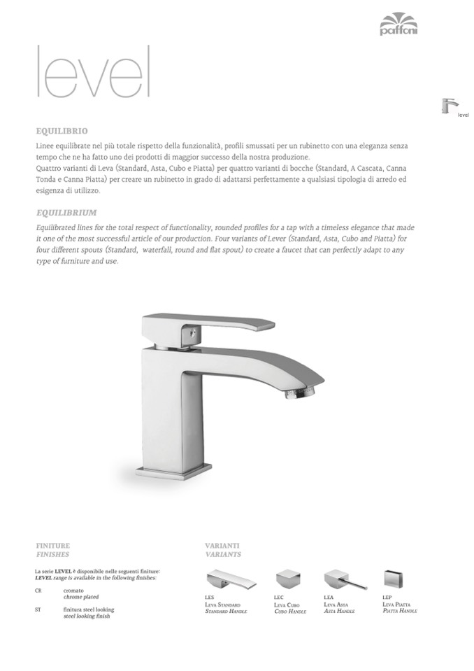 it one of the most successful article of our production. Four variants of Lever (Standard, Asta, Cubo and Piatta) for