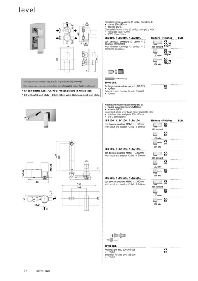 * For concealed/external set divided (see Concealed mixer Projects chapter)