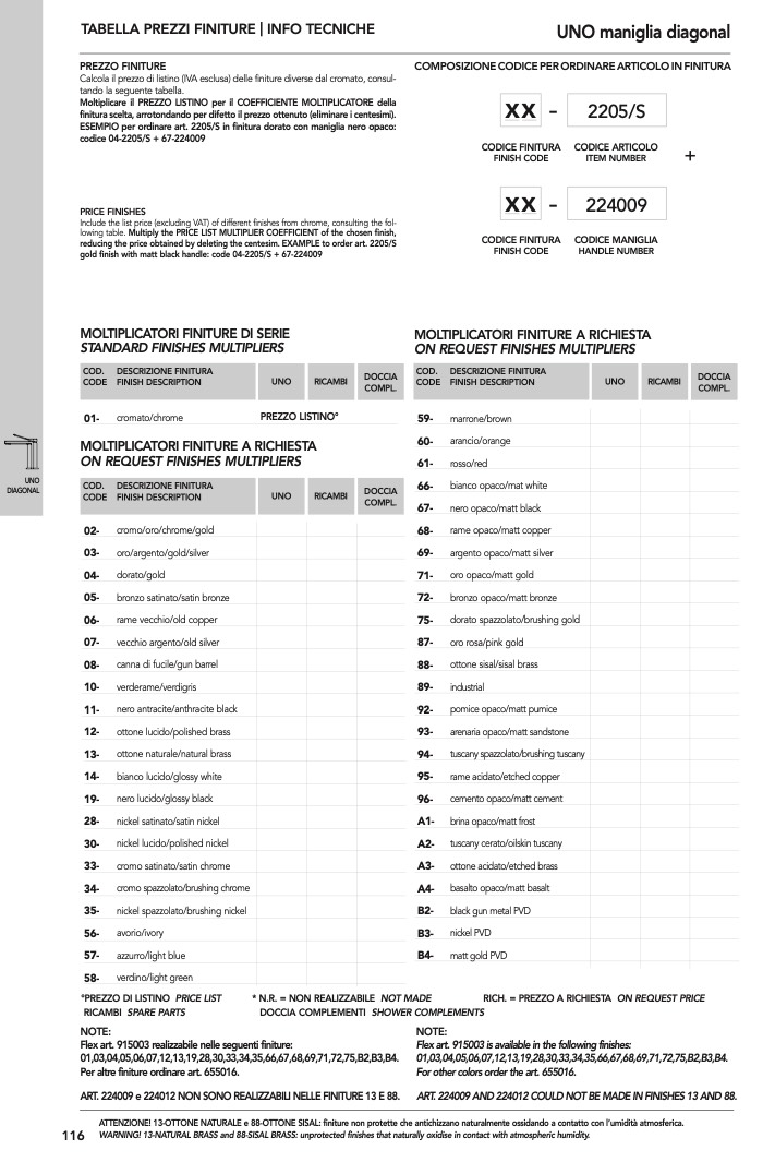 lowing table. Multiply the PRICE LIST MULTIPLIER COEFFICIENT of the chosen finish,
