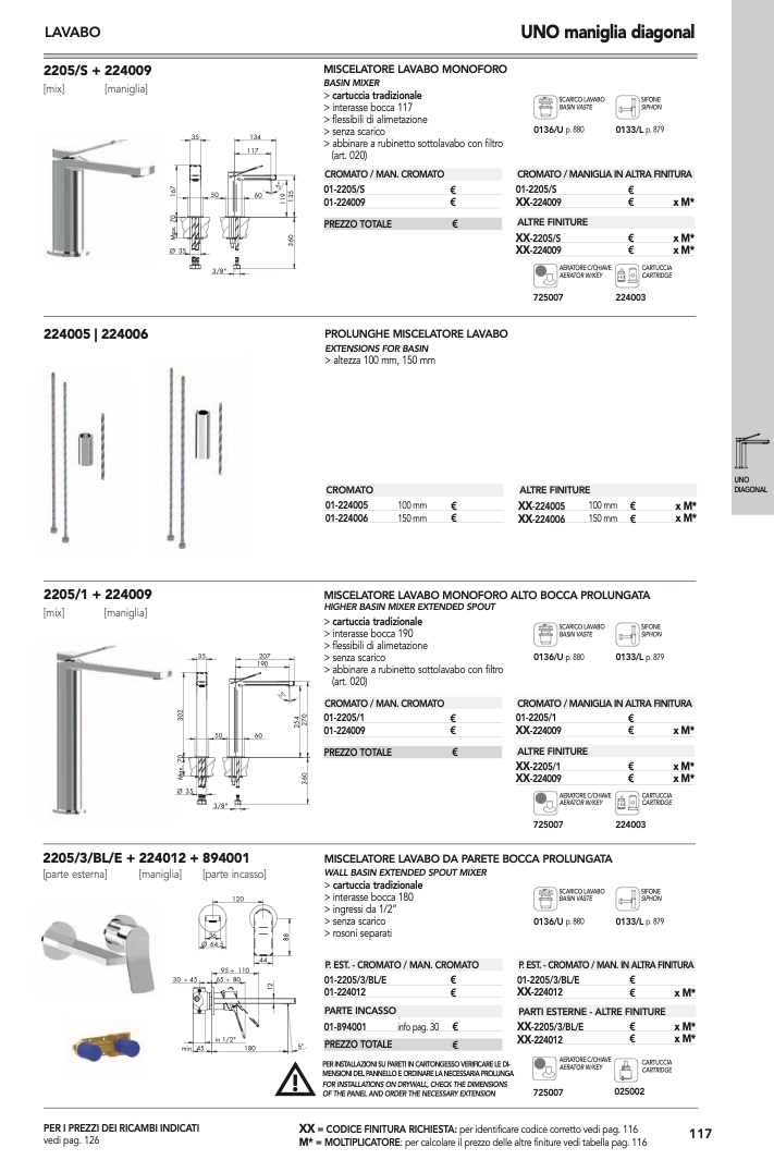 : per calcolare il prezzo delle altre finiture vedi tabella pag. 116