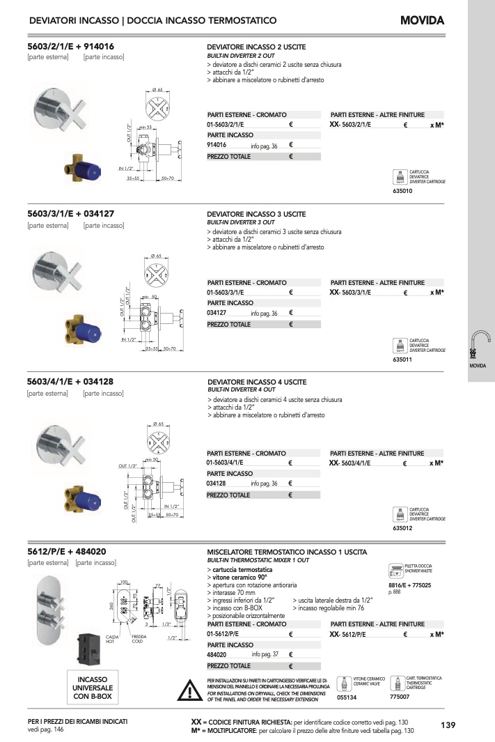 : per calcolare il prezzo delle altre finiture vedi tabella pag. 130