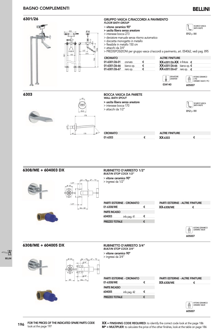 > PREDISPOSIZIONI per gruppo vasca c/raccordi a pavimento, art. 054062, vedi pag. 895