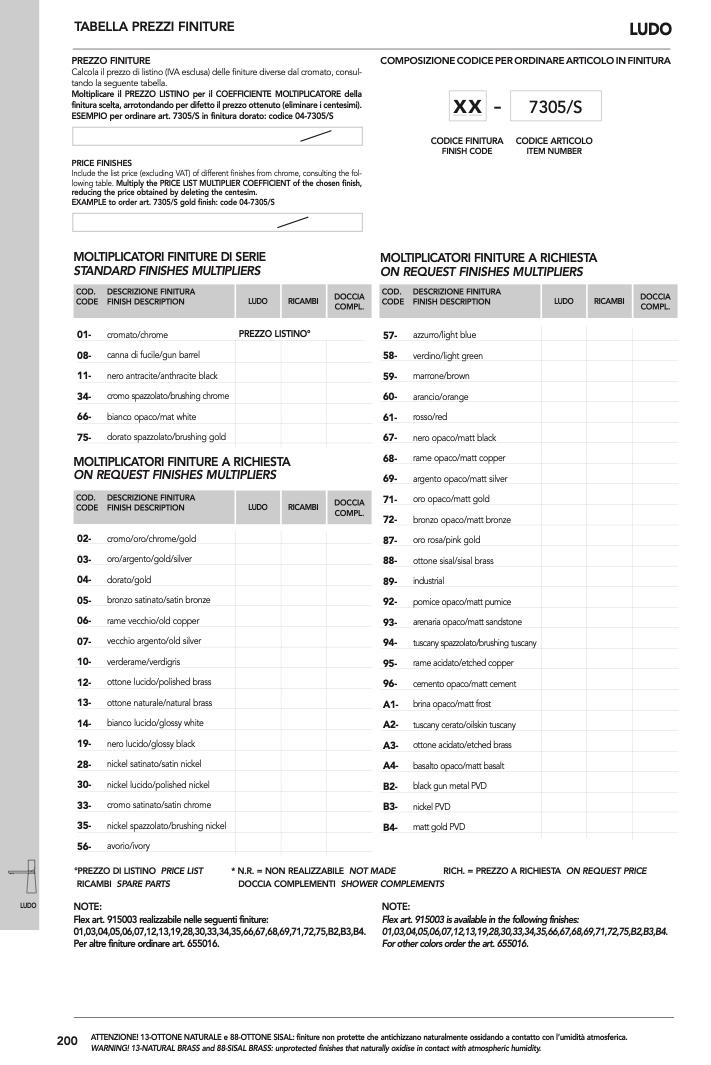 lowing table. Multiply the PRICE LIST MULTIPLIER COEFFICIENT of the chosen finish,