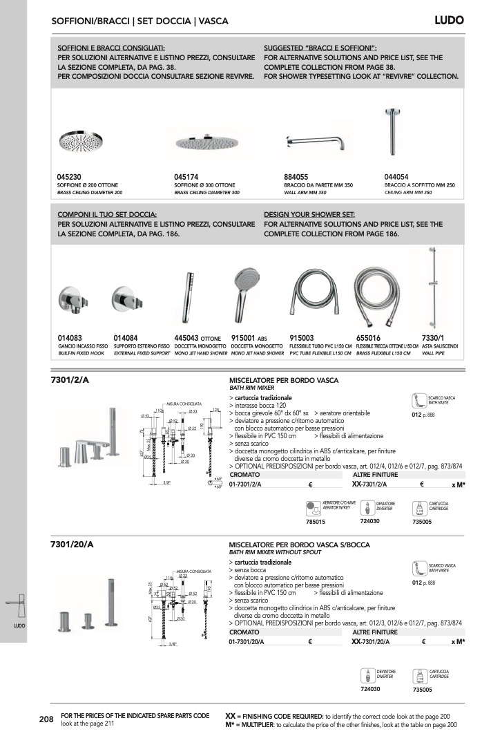 > OPTIONAL PREDISPOSIZIONI per bordo vasca, art. 012/3, 012/6 e 012/7, pag. 873/874