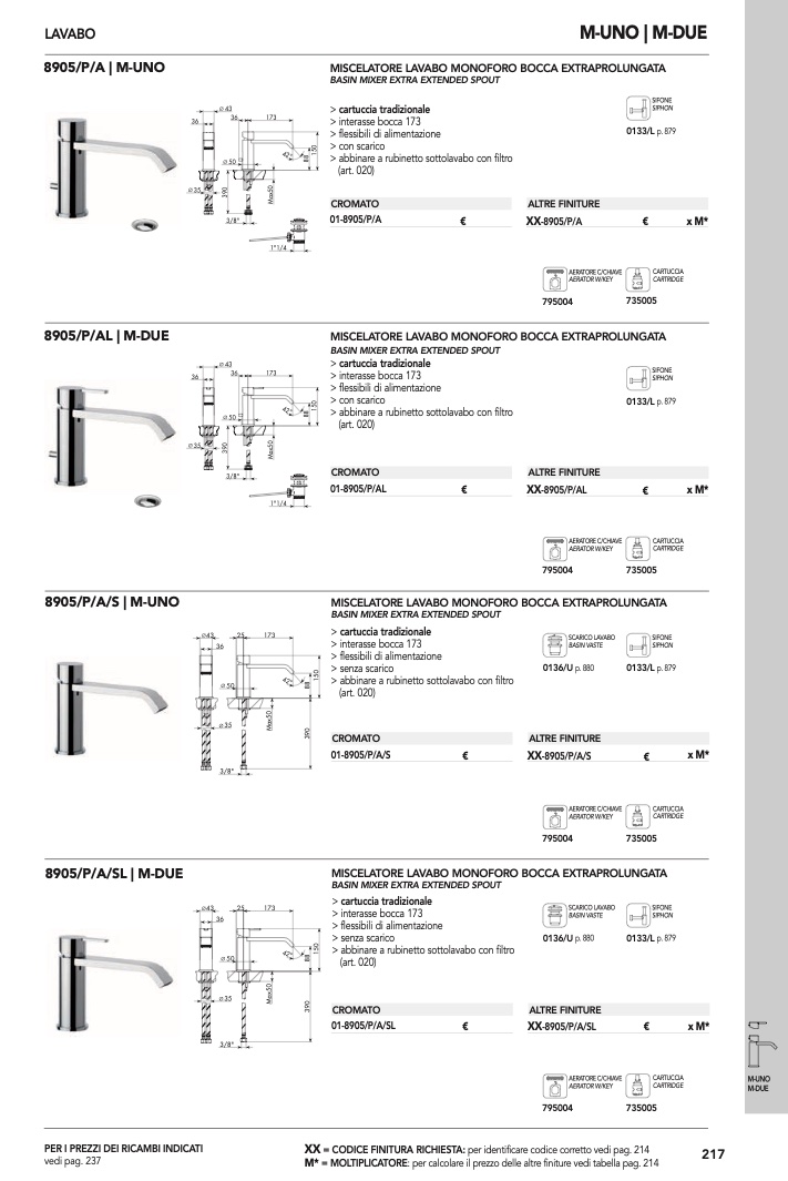 : per calcolare il prezzo delle altre finiture vedi tabella pag. 214