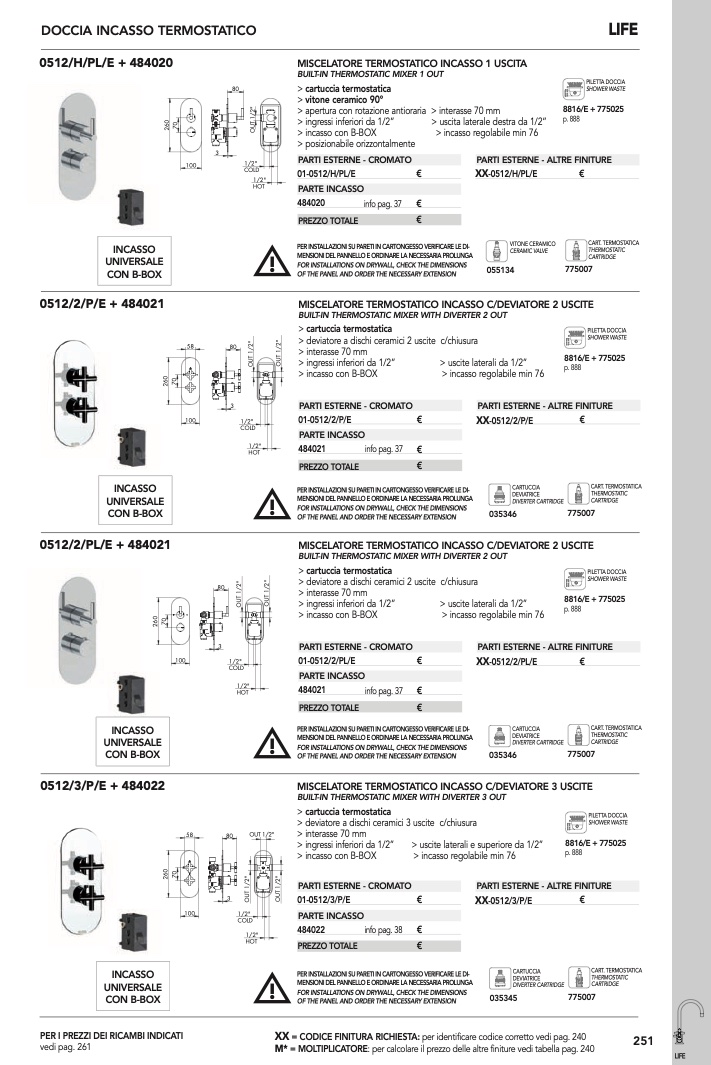 BUILT-IN THERMOSTATIC MIXER WITH DIVERTER 3 OUT