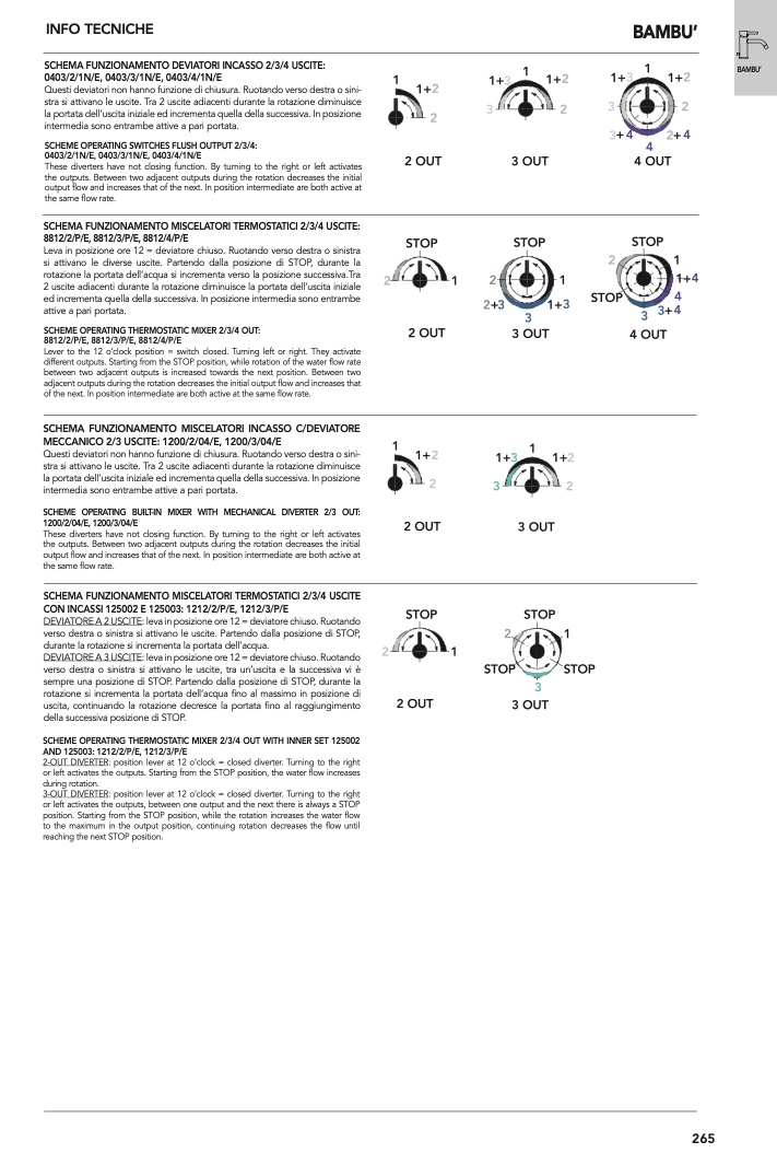 SCHEME OPERATING THERMOSTATIC MIXER 2/3/4 OUT: