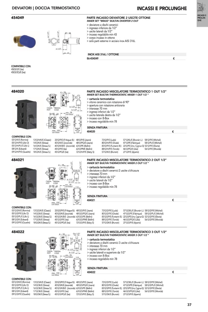 INNER SET BUILT-IN THERMOSTATIC MIXER 3 OUT 1/2 “