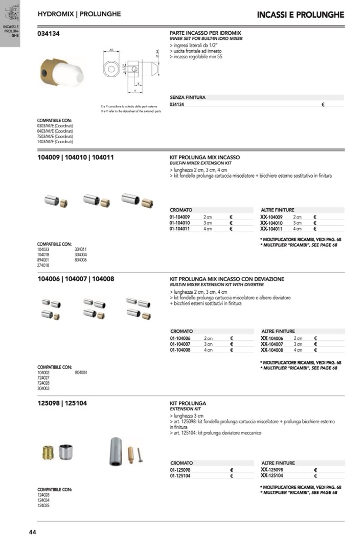 > art. 125098: kit fondello prolunga cartuccia miscelatore + prolunga bicchiere esterno