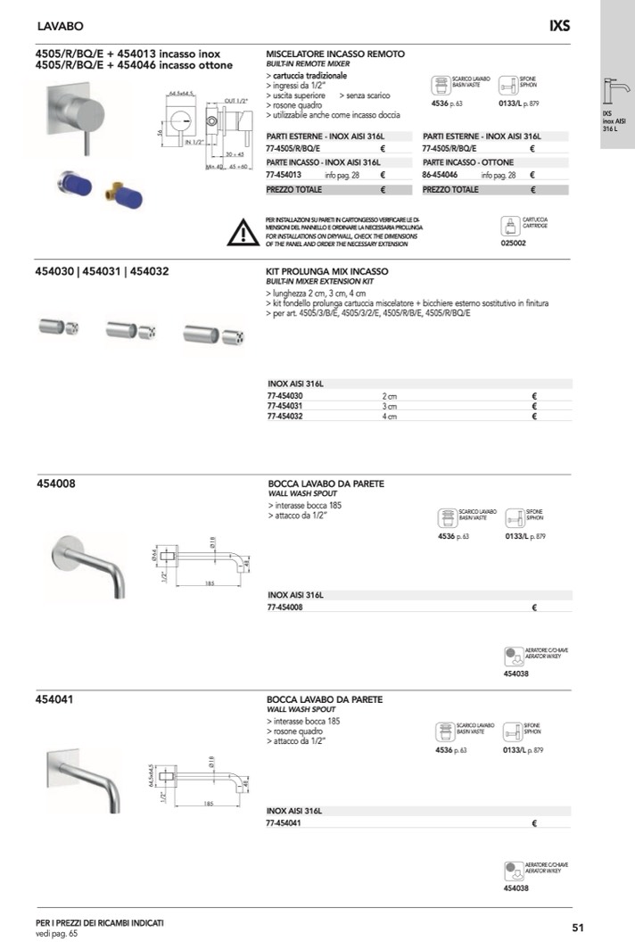 > kit fondello prolunga cartuccia miscelatore + bicchiere esterno sostitutivo in finitura