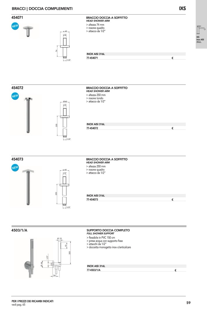 > doccetta monogetto inox c/anticalcare
