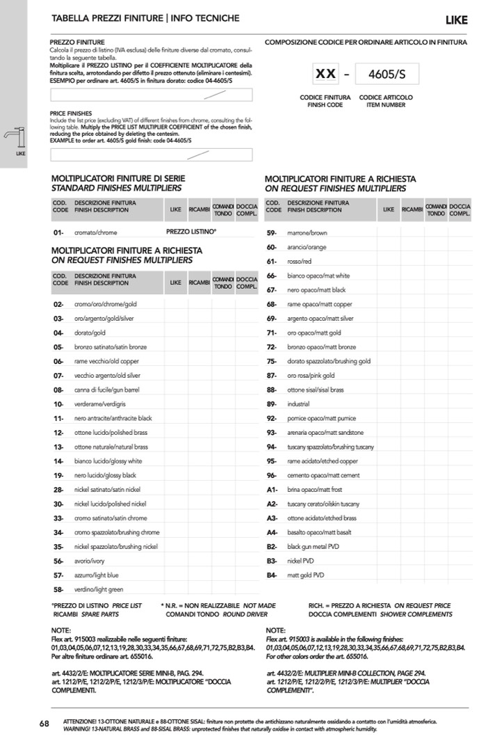 lowing table. Multiply the PRICE LIST MULTIPLIER COEFFICIENT of the chosen finish,
