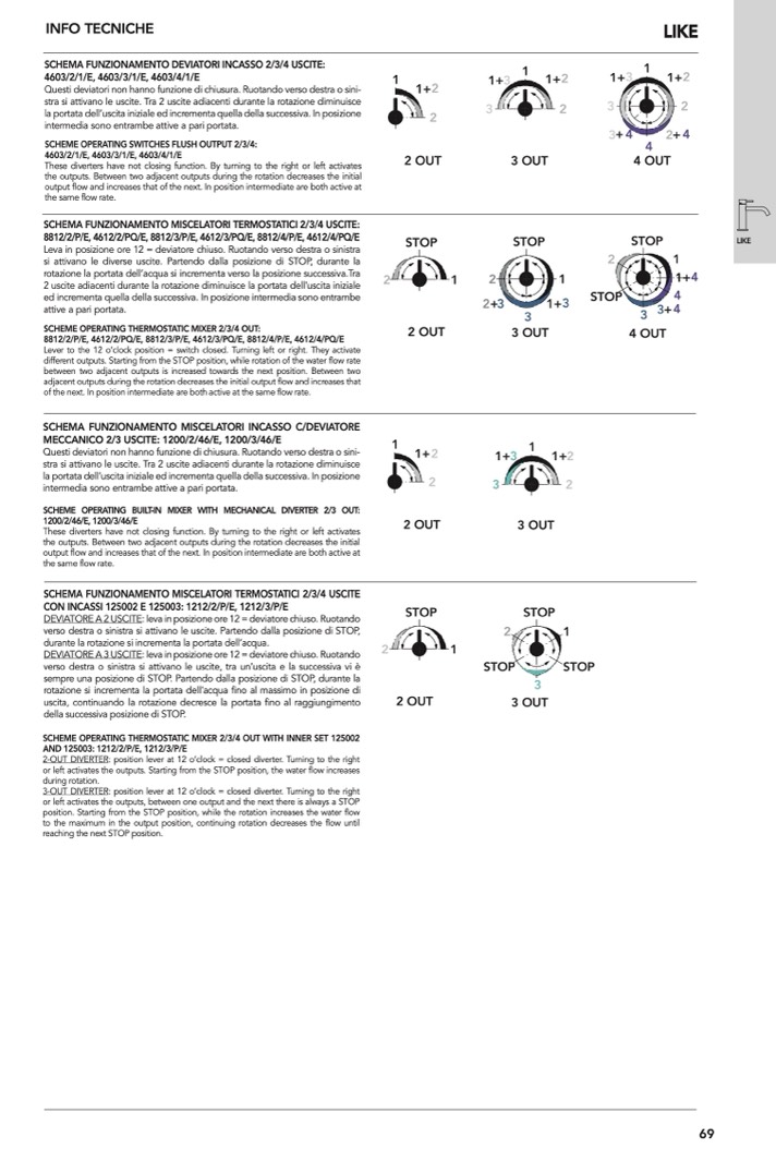 SCHEME OPERATING THERMOSTATIC MIXER 2/3/4 OUT: