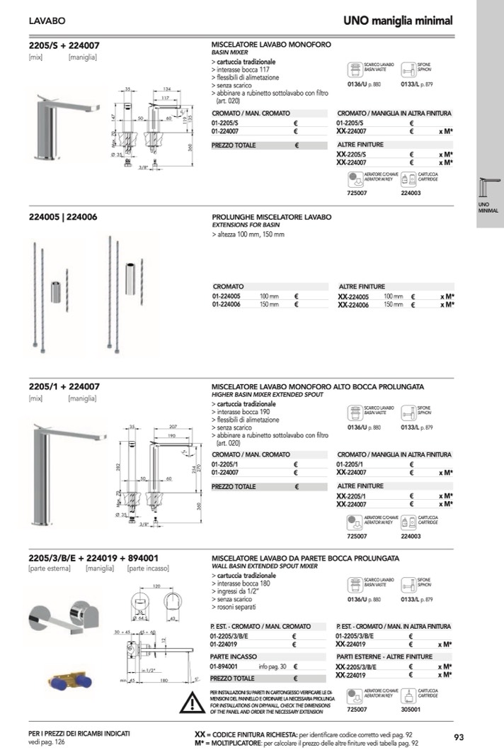 : per calcolare il prezzo delle altre finiture vedi tabella pag. 92