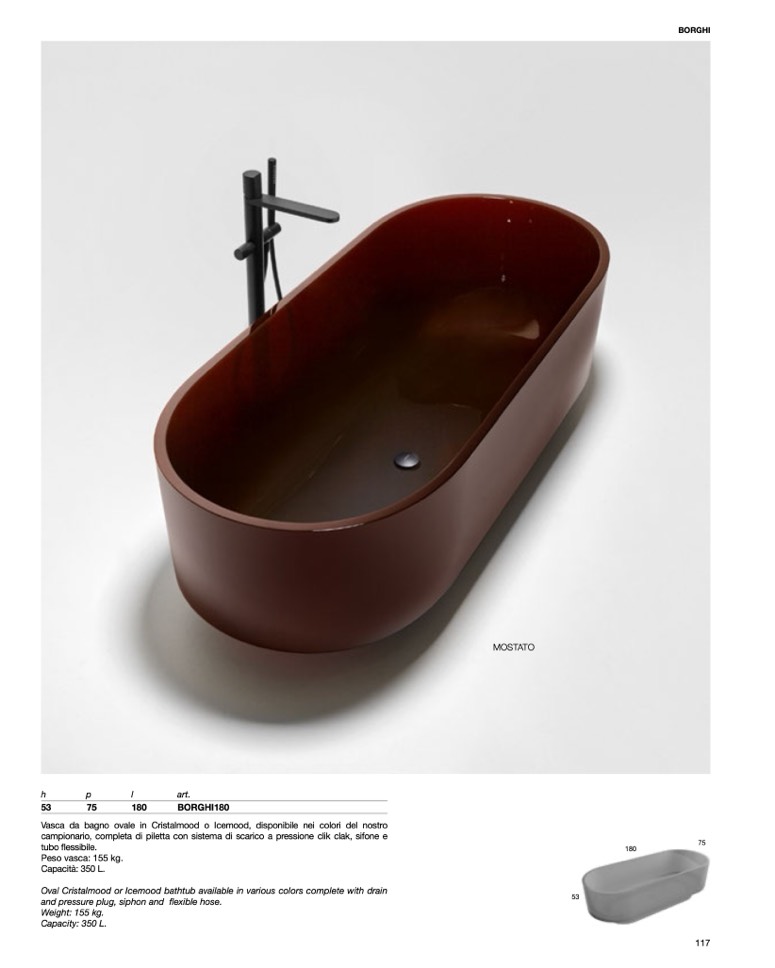 Oval Cristalmood or Icemood bathtub available in various colors complete with drain