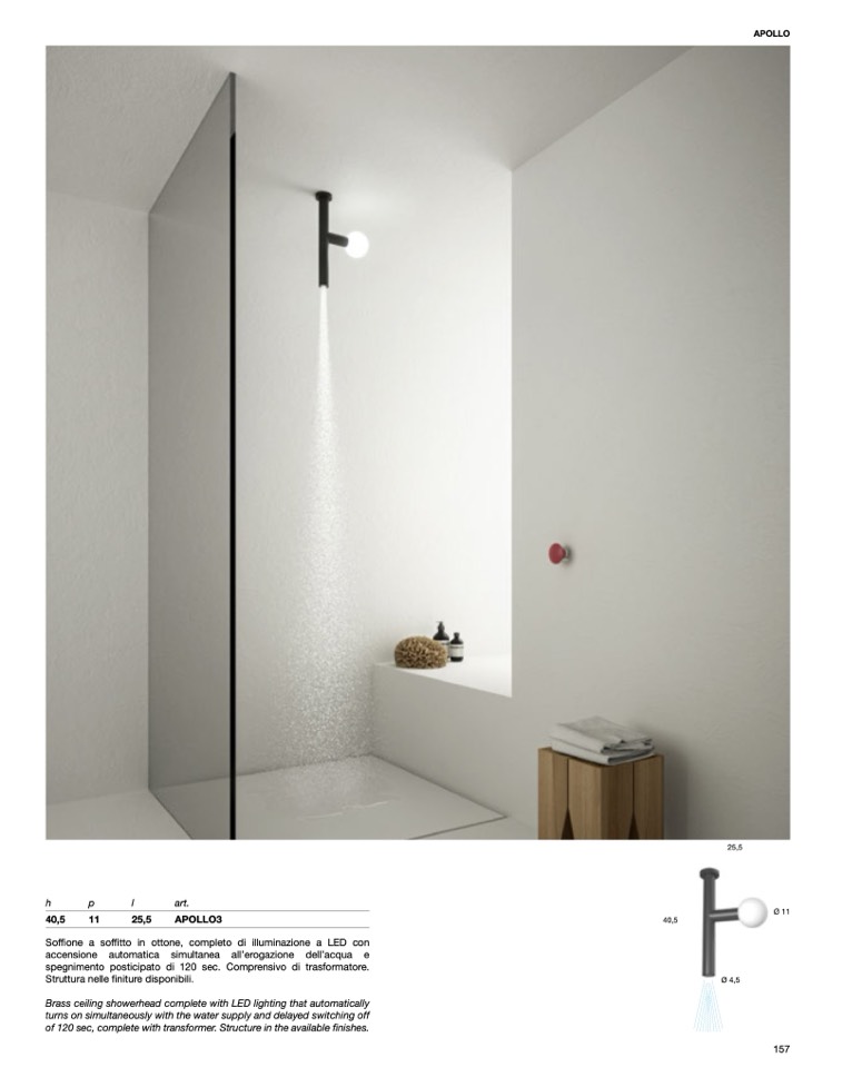 Soffione a soffitto in ottone, completo di illuminazione a LED con