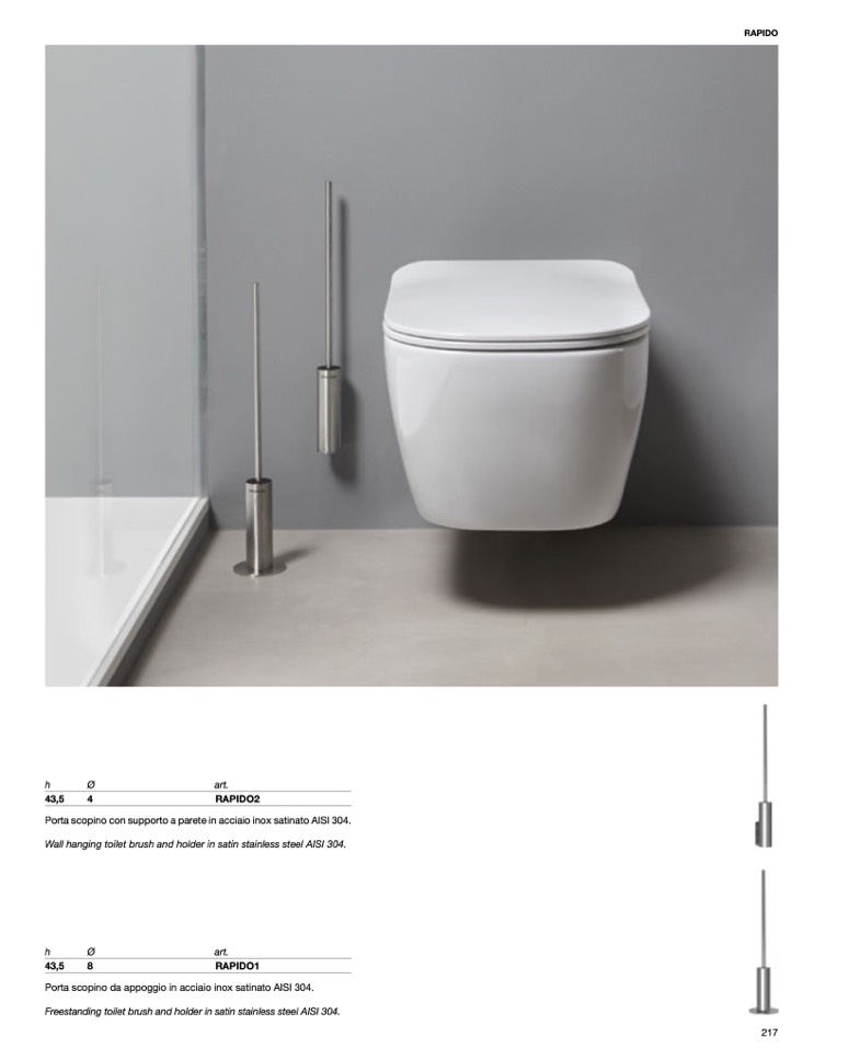 Freestanding toilet brush and holder in satin stainless steel AISI 304.