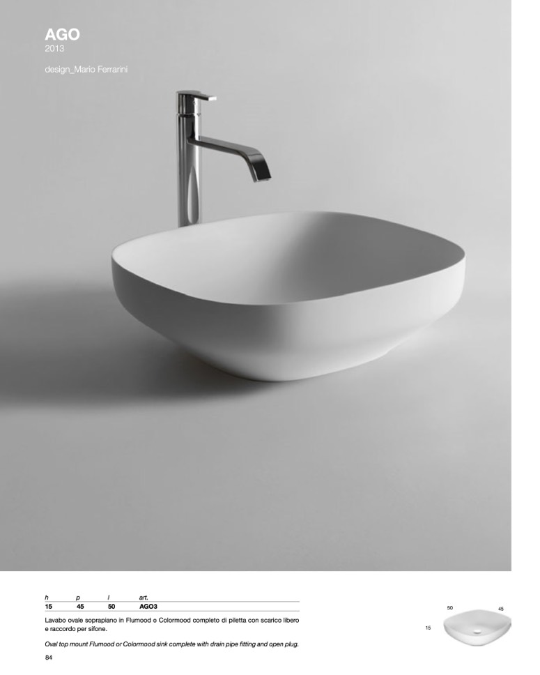 Lavabo ovale soprapiano in Flumood o Colormood completo di piletta con scarico libero