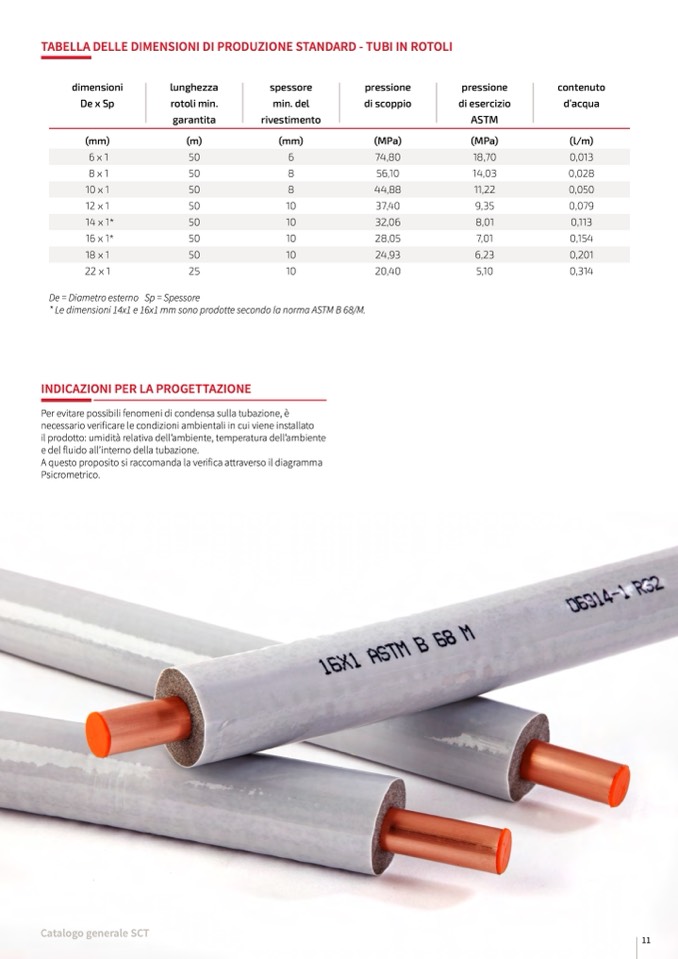 * Le dimensioni 14x1 e 16x1 mm sono prodotte secondo la norma ASTM B 68/M.