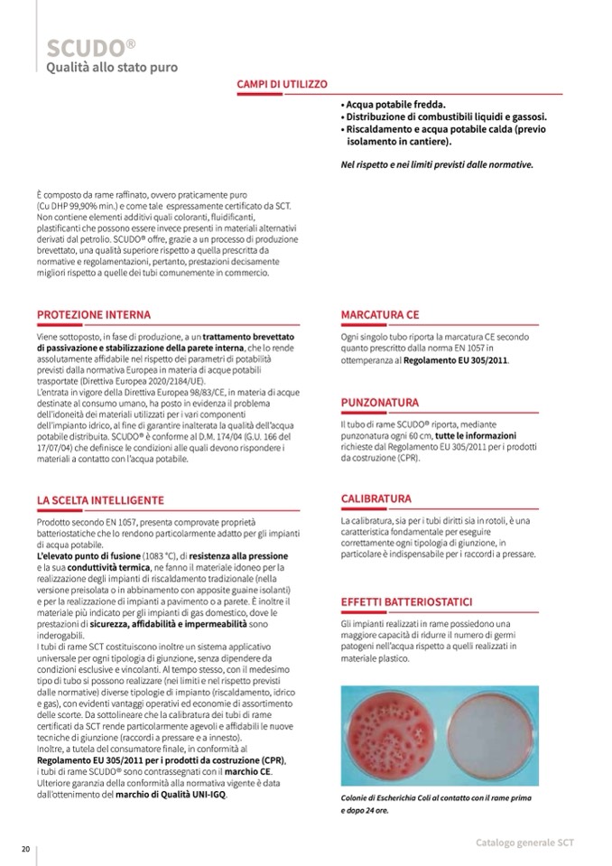 I tubi di rame SCT costituiscono inoltre un sistema applicativo