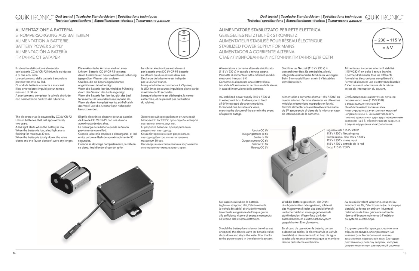 The electronic tap is powered by CC 6V CR-P2