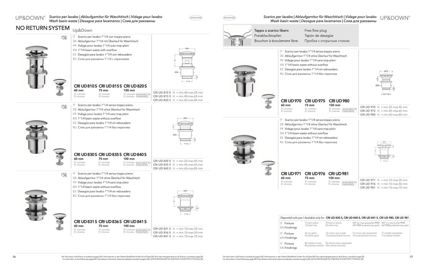 For information on the finishes see page 242 I Para obtener informacion sobre los acabados consultar la pagina 242 | ДЛЯ ИНФОРМАЦИЙ ОБ ОТДЕЛКАХ ПОСМОТРИТЕ СТРАНИЦУ 242