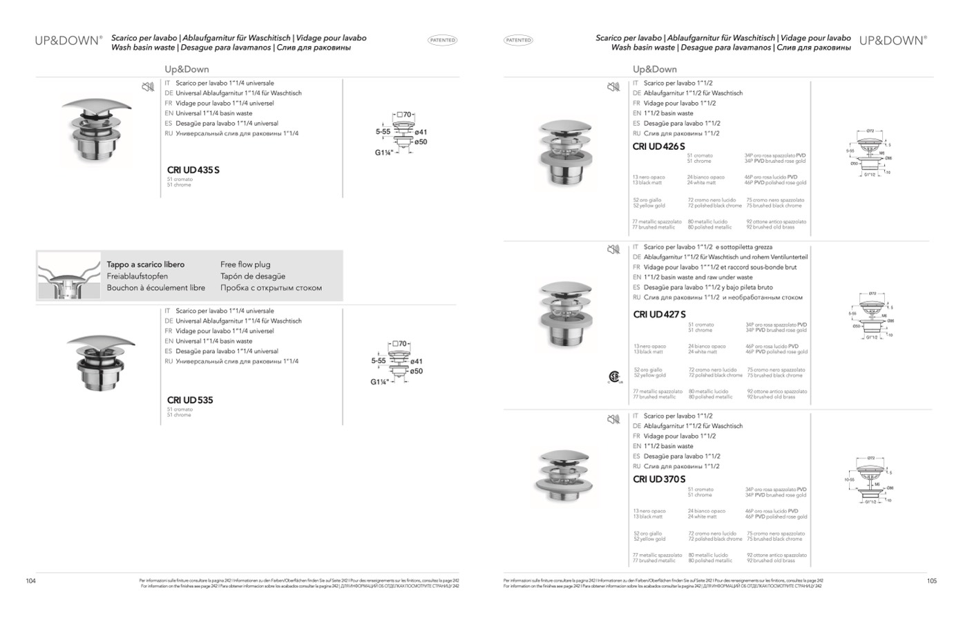 For information on the finishes see page 242 I Para obtener informacion sobre los acabados consultar la pagina 242 | ДЛЯ ИНФОРМАЦИЙ ОБ ОТДЕЛКАХ ПОСМОТРИТЕ СТРАНИЦУ 242