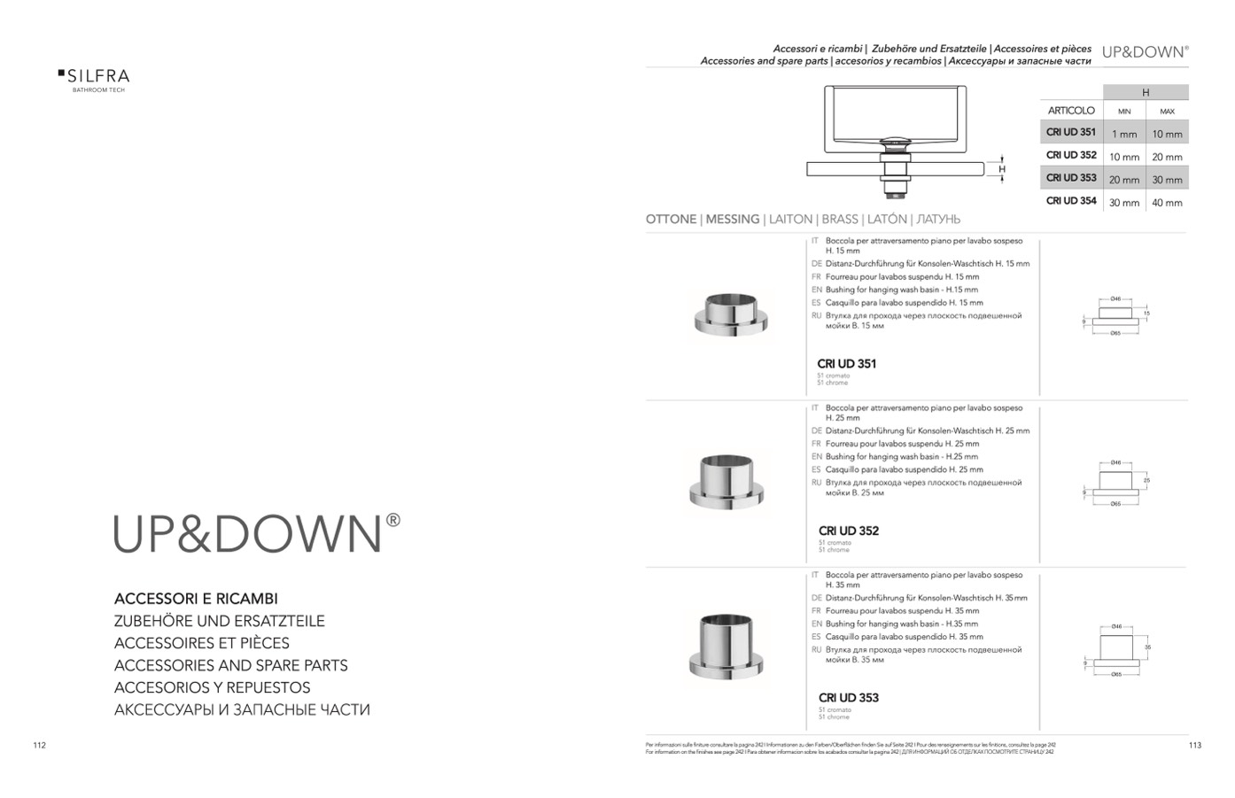 Per informazioni sulle finiture consultare la pagina 242 I Informationen zu den Farben/Oberflächen finden Sie auf Seite 242 I Pour des renseignements sur les finitions, consultez la page 242