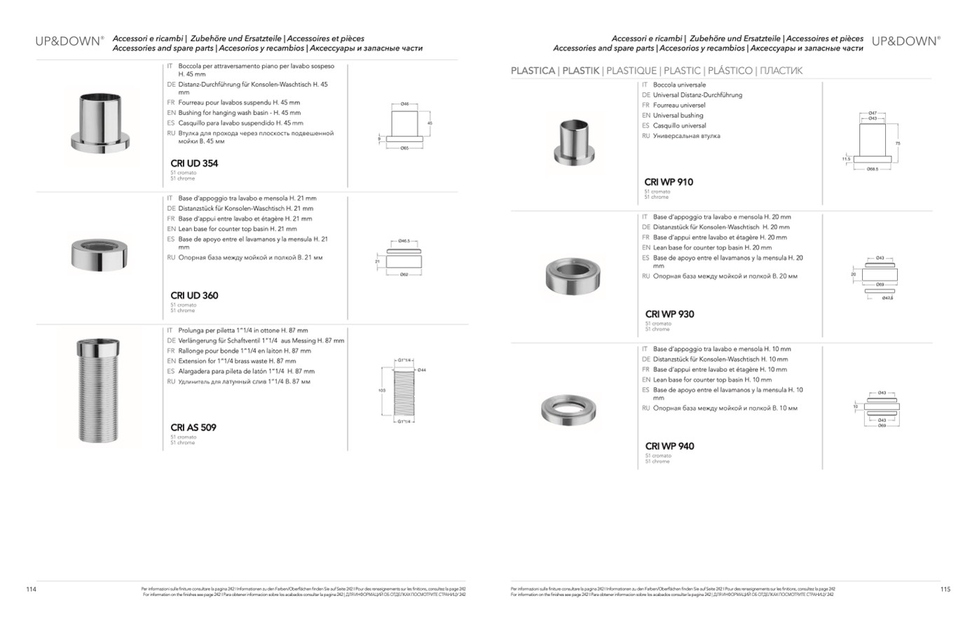Per informazioni sulle finiture consultare la pagina 242 I Informationen zu den Farben/Oberflächen finden Sie auf Seite 242 I Pour des renseignements sur les finitions, consultez la page 242