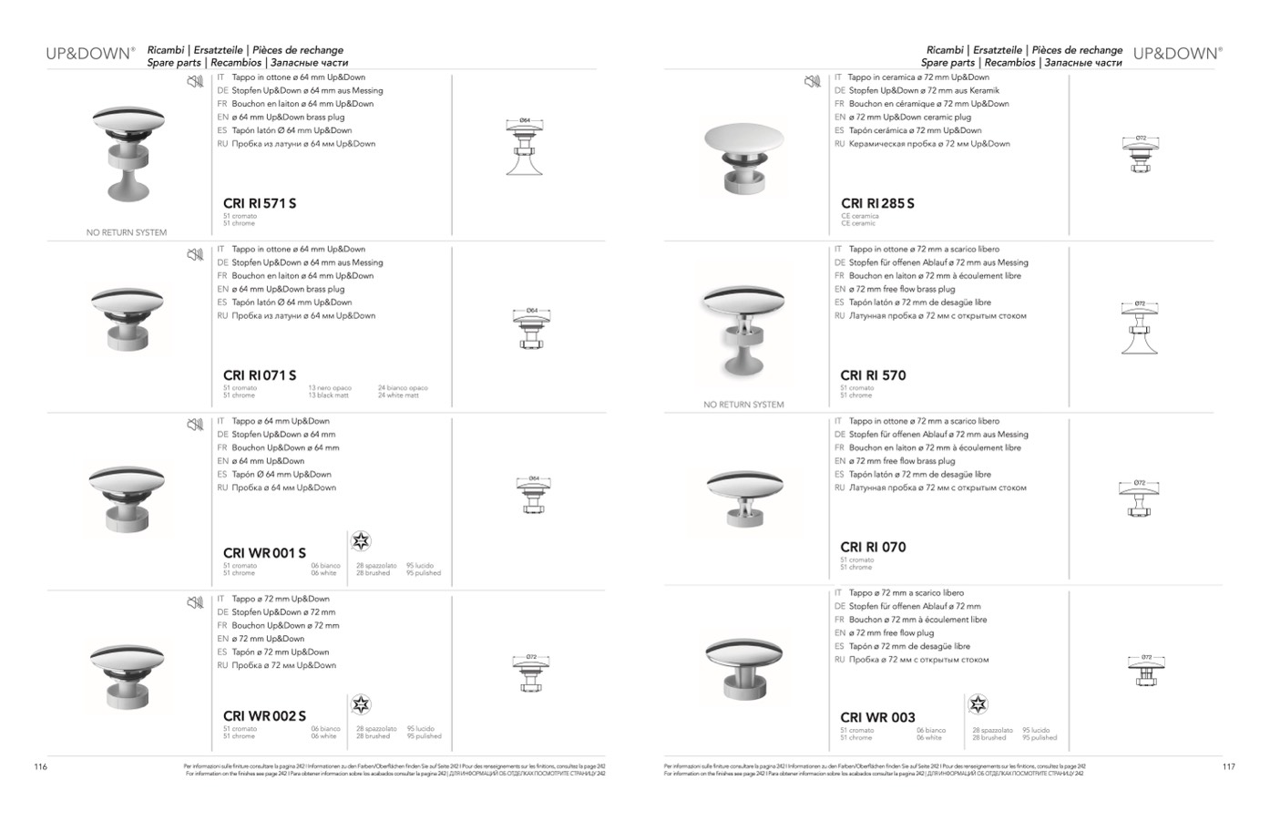 Per informazioni sulle finiture consultare la pagina 242 I Informationen zu den Farben/Oberflächen finden Sie auf Seite 242 I Pour des renseignements sur les finitions, consultez la page 242