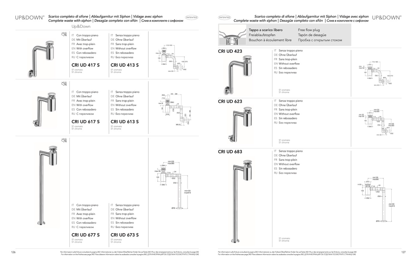 For information on the finishes see page 242 I Para obtener informacion sobre los acabados consultar la pagina 242 | ДЛЯ ИНФОРМАЦИЙ ОБ ОТДЕЛКАХ ПОСМОТРИТЕ СТРАНИЦУ 242