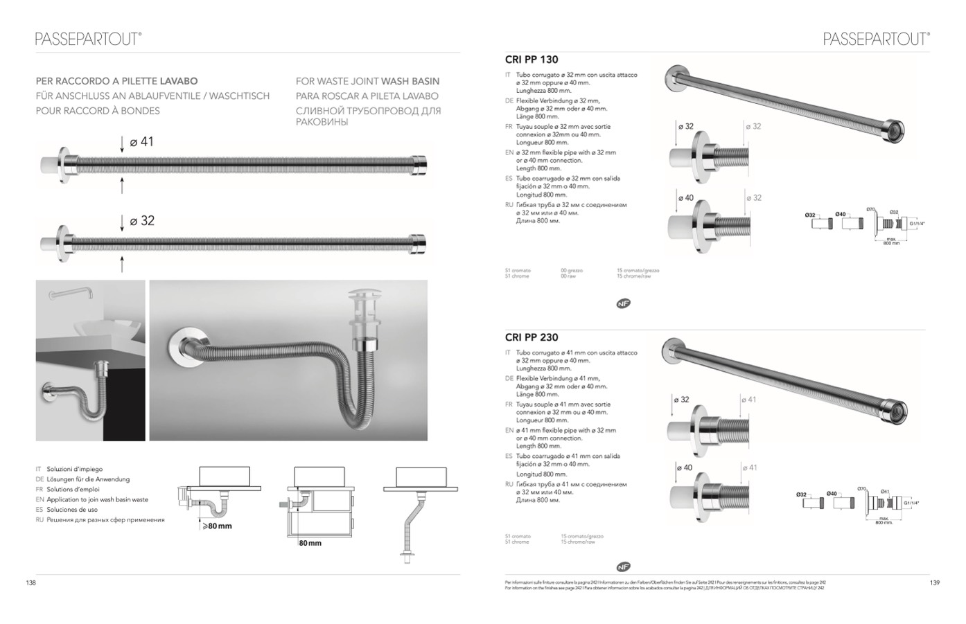 Per informazioni sulle finiture consultare la pagina 242 I Informationen zu den Farben/Oberflächen finden Sie auf Seite 242 I Pour des renseignements sur les finitions, consultez la page 242