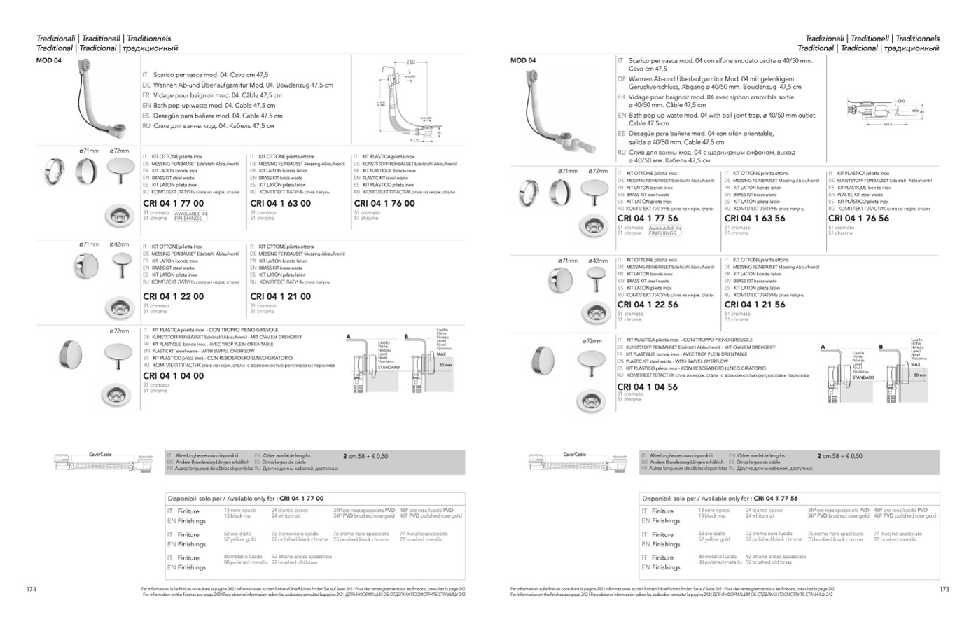EN Bath pop-up waste mod. 04. Cable 47.5 cm