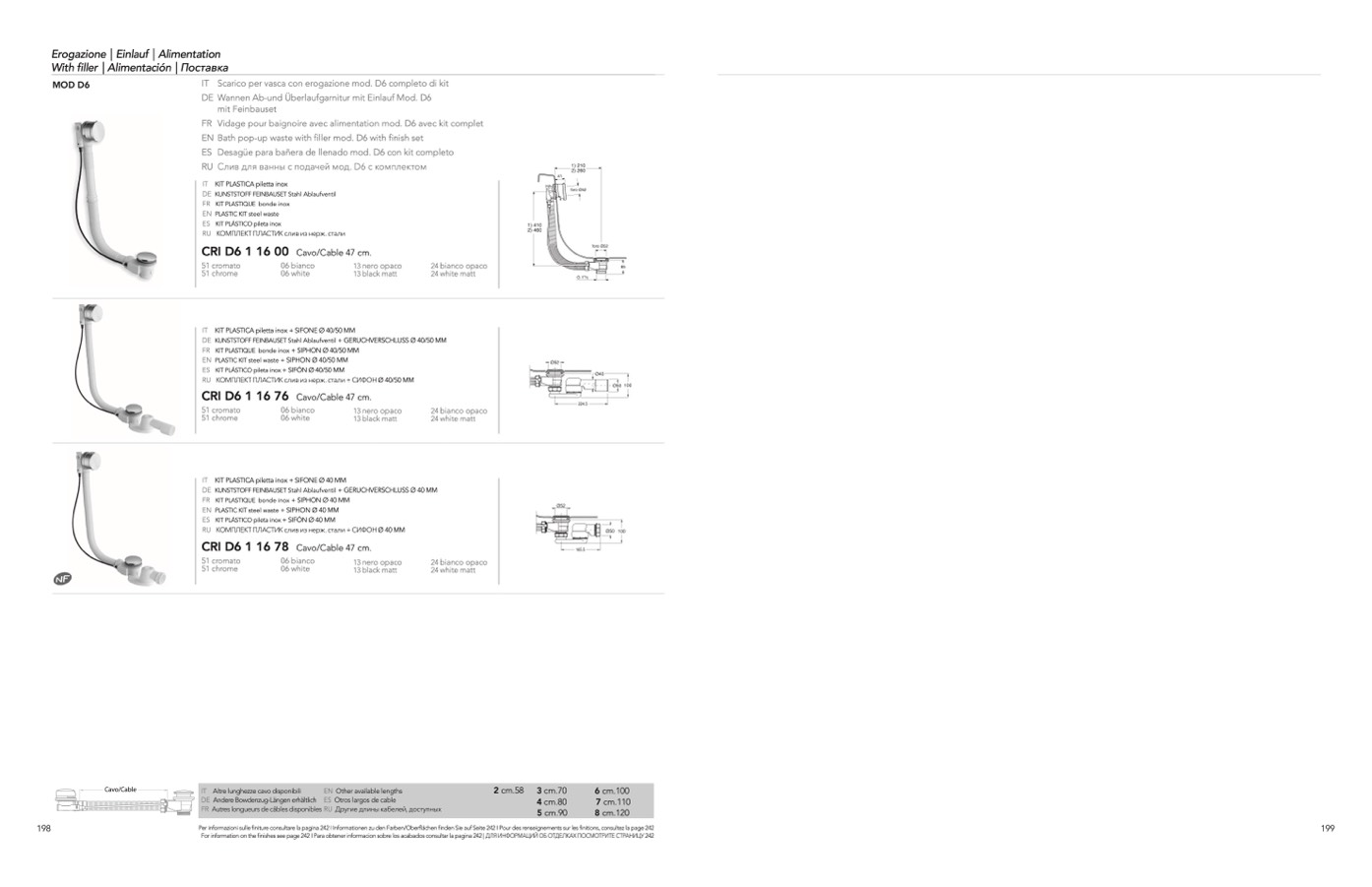 RU Слив для ванны с подачей мод. D6 с комплектом