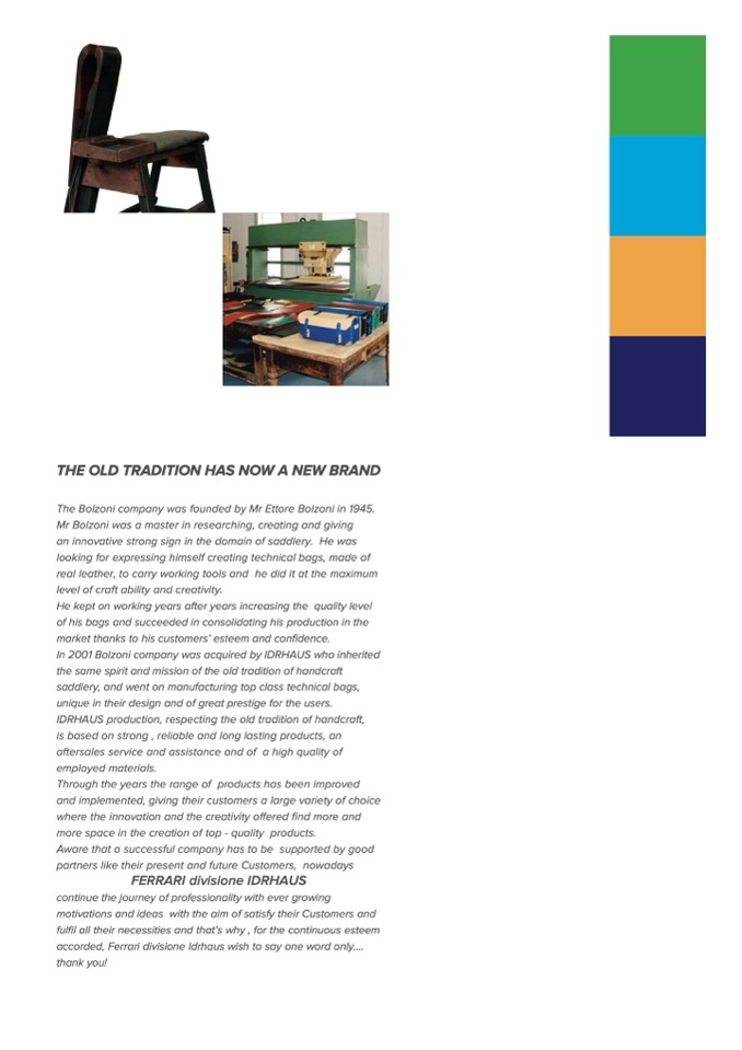 In 2001 Bolzoni company was acquired by IDRHAUS who inherited