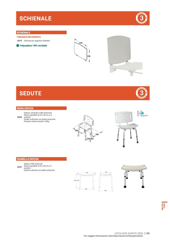 Seduta e schienale in ABS antiscivol