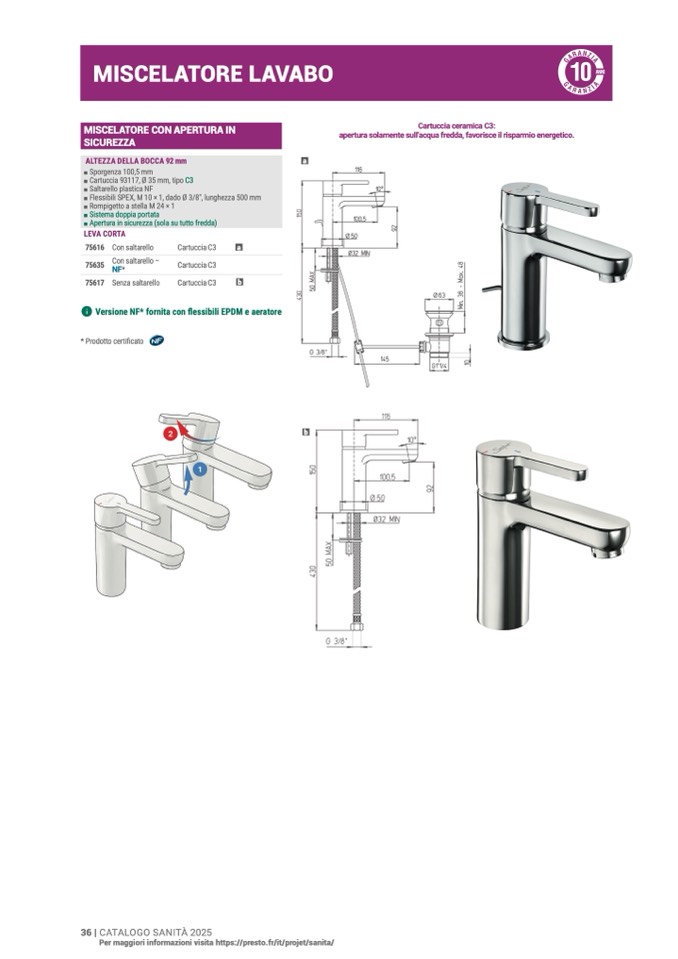 ʢ Versione NF* fornita con flessibili EPDM e aeratore
